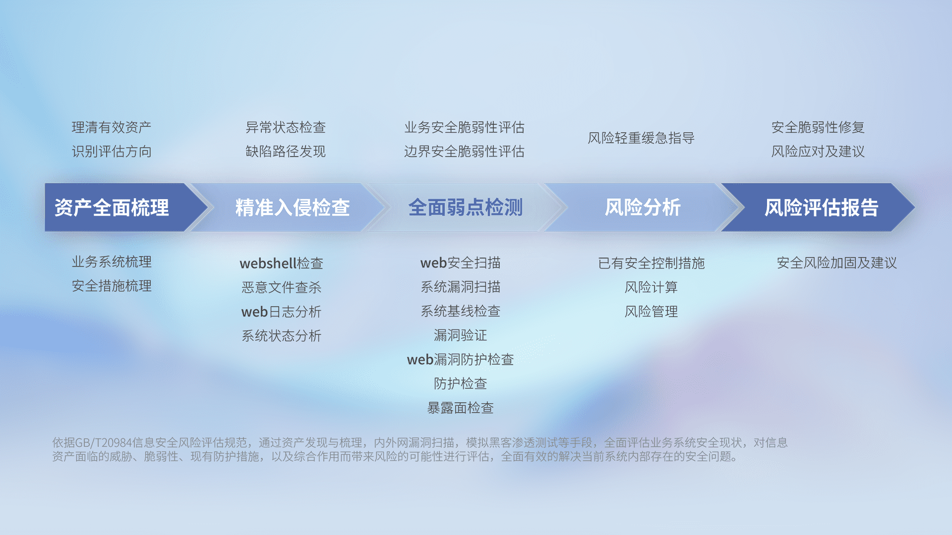 针对客户行业特性,,,,以专业的安全服务+多厂商联合解决方案提供专属的一站式安全管理服务,,帮助客户全面感知网络空间威胁,,,,基于识别、、、、检测、、、、分析、、防护、、监测、、、响应的服务理论模型,,,从方案咨询、、集成交付、、评估验证、、优化加固、、、、运维运营,,,致力于为客户提供完整的闭环管理式安全服务。。。以实战经验为客户打造高抵御风险的安全体系,,,帮助客户发现威胁、、、、对抗威胁、、处置威胁,,,不断积累安全对抗能力,,,持续保障数字化安全。。。