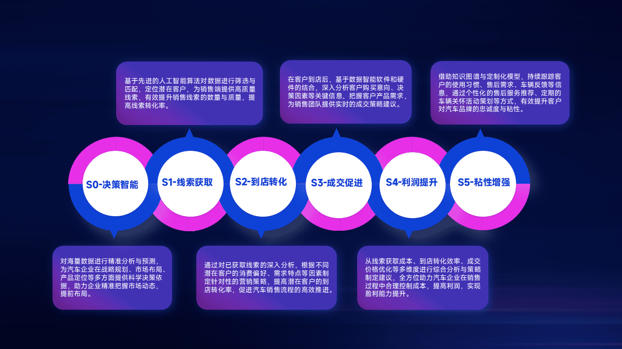 通过拓宽潜在客户来源、、、优化线索分配并提高到店转化率,,以增强销售效率。。同时,,,,利用线索数据不断优化分析模型,,有效提升转化率,,,,扩大营销影响力。。。。